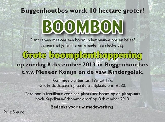 Op 8 december 2013 wordt het Buggenhoutse Bos weer een stukje groter. 10 hectare grond zal beplant worden met jonge bomen.