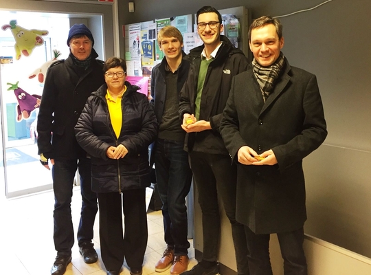 Naar jaarlijkse gewoonte trokken onze bestuursleden en mandatarissen de straat op om onze befaamde chocolaatjes uit te delen.