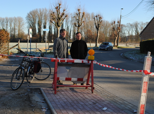 Schepen van Mobiliteit Wim Mommaers en ‘fietsende schepen’ en buurtbewoner Jan Jacobs (beide N-VA) zijn alvast tevreden met het resultaat."