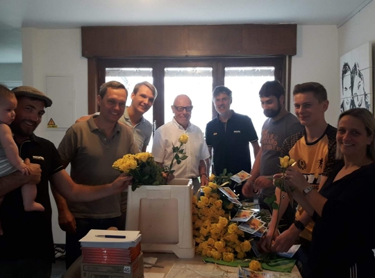 Maar ons team kwam, zoals elk jaar (m.u.v. 2018 toen was het sperperiode en mochten politieke partijen niets gratis weggeven), langs bij de bewoners van de huizen die de Vlaamse leeuw lieten wapperen. Ze deelden gele rozen uit. En er waren dit jaar opvallend meer huizen met een gele vlag!